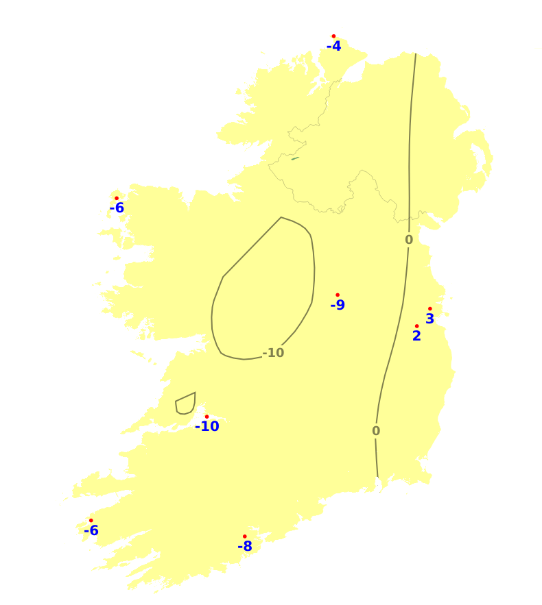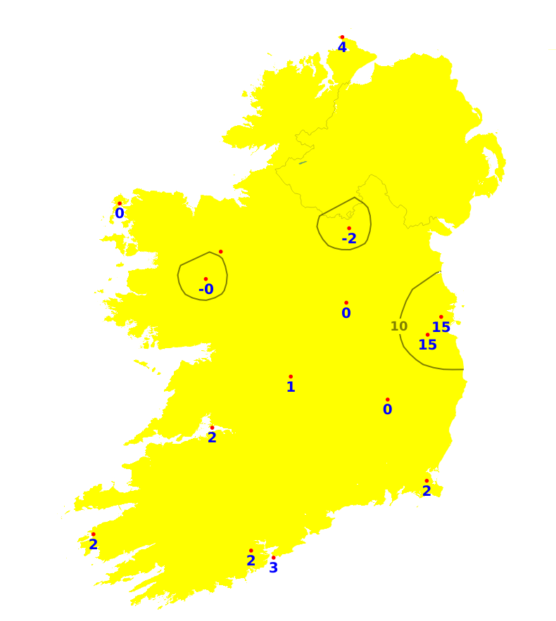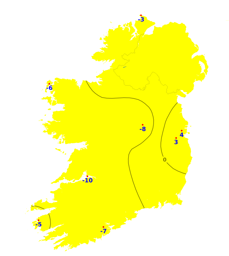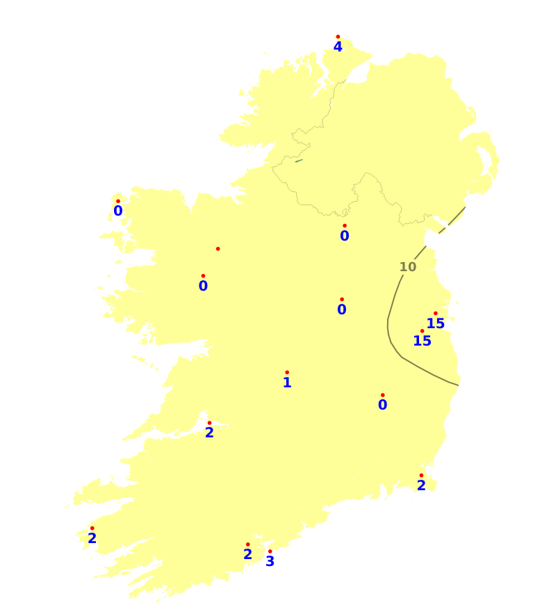 Mean air temperatures over the past week were close to or above normal for the time of year, ranging from 8 degrees at Knock/Ireland West Airport, Co. Mayo to 9.8 degrees at Roche's Point, Co. Cork. The east had the greatest deviation from normal with Casement Aerodrome, Co. Dublin recording 1.5 degrees above it's average. Mean soil temperatures ranged between 8.1 and 10.7 degrees which is between 1.4 and 3.1 degrees above normal. An easterly airflow will likely be dominate for much of the coming week resulting in near average temperatures in the east and north-east, up to 2 degrees above normal in the southwest. Mean soil temperatures will continue above normal.