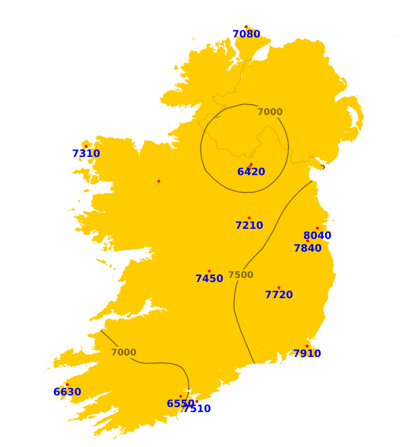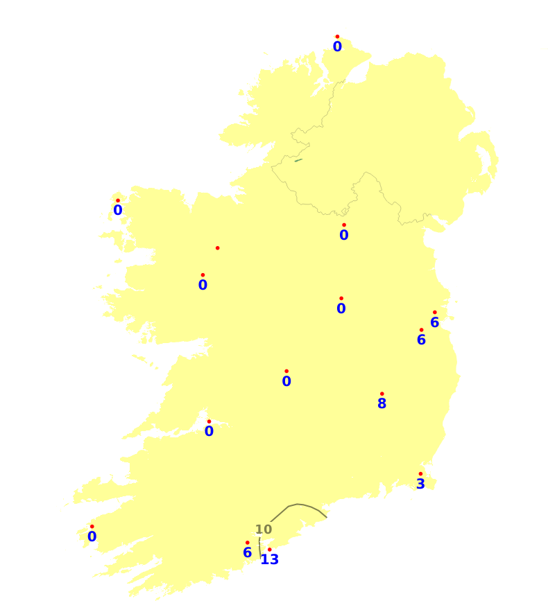 Over the past seven days, rainfall amounts varied significantly across the country, with the west and northwest receiving a little above average, while rainfall was around average in the midlands, and it was drier in the south and east. The least amount of rainfall was recorded at Roches Point, Co. Cork, which received only 2.2mm or 14% of average, while the highest amount, 27.5mm or 139% of normal, was recorded at Belmullet, Co. Mayo. Our weather will be unsettled over the Easter weekend, with the heaviest rainfall on Saturday due to Storm Dave and with mixed but drier conditions for the rest of the weekend. Into next week it'll continue mixed and changeable with further rain, though with some uncertainty in the forecast from the middle of next week. Rainfall amounts of between one and two times the average are expected generally, though up to three times the average in some western areas, and possibly a little below average in the east.