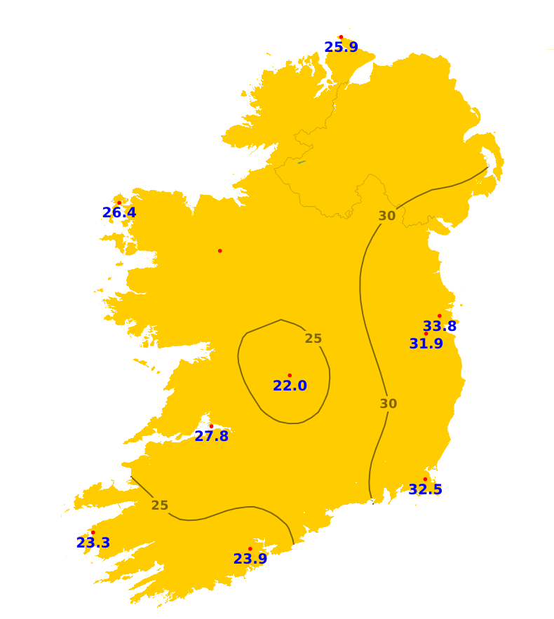 Sunshine amounts over the past week were generally close to normal, with amounts ranging from 22 hours at Gurteen, Co. Tipperary, to 33.9 hours or 112% of average at Dublin airport. Over the coming week, the weather will be mixed, and while there'll be sunny spells at times, sunshine amounts likely to come in a little below average.