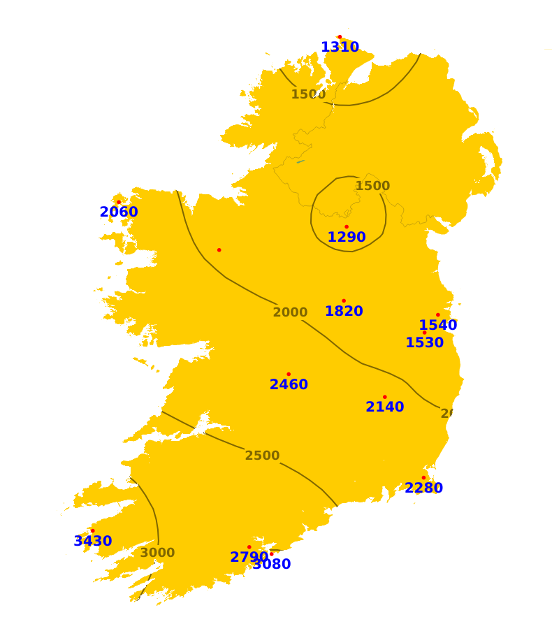 Sunshine amounts were well below average across most of the country apart from the southwest. Generally sunshine amounts in most areas ranged from around 25% to 75% of average. The lowest amount of sunshine was recorded at Casement Aerodrome, Co. Dublin where just 4 hours or 24% of average was recorded. The highest amount of rainfall was recorded at Valentia Observatory, Co. Kerry where 19.3 hours or 133% of average was recorded. The coming 7 days should see a mix of cloud and sunnier spells, meaning sunshine amounts will be expected to increase.