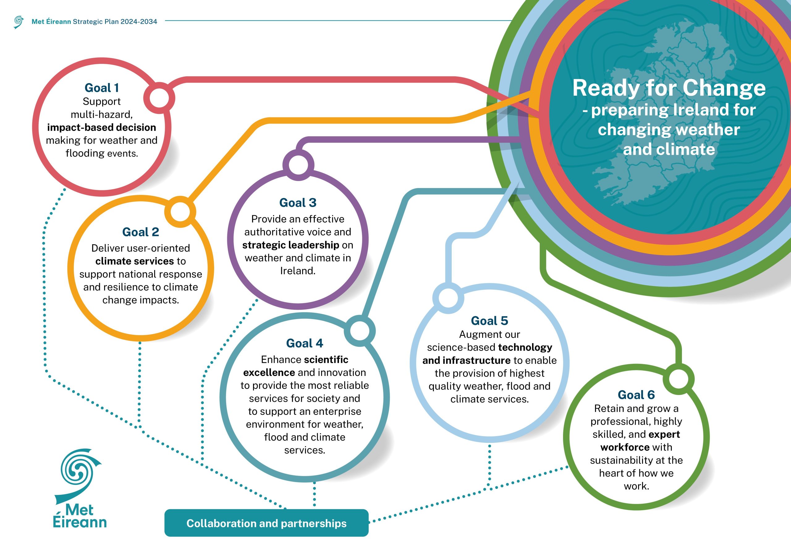 Sprioc 4 Barr feabhais agus nuálaíocht eolaíochta a fheabhsú chun na seirbhísí is iontaofa a sholáthar don tsochaí agus chun tacú le timpeallacht fiontraíochta le haghaidh seirbhísí aimsire, tuilte agus aeráide.