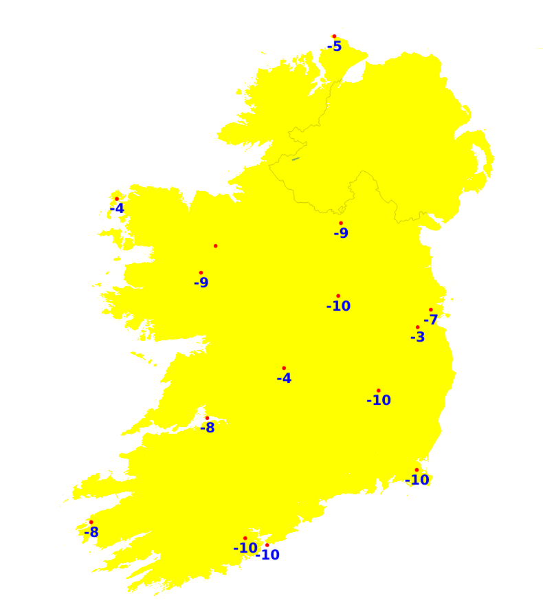 Temperatures over the past week were generally near average, ranging from 4.6 degrees at Knock Airport, Co. Mayo to 7.1 degrees at Malin Head, Co. Donegal. This is between 0.8 degrees below normal and 1.2 degrees above. Mean soil temperatures are generally close to or slightly above average, ranging from 4.8 to 6.5 degrees, which is between 0.2 degrees below normal to 1.9 degrees above. Temperatures will fluctuate a little over the coming week but overall will be within a degree of normal. Little change is expected in mean soil temperatures over the coming week.