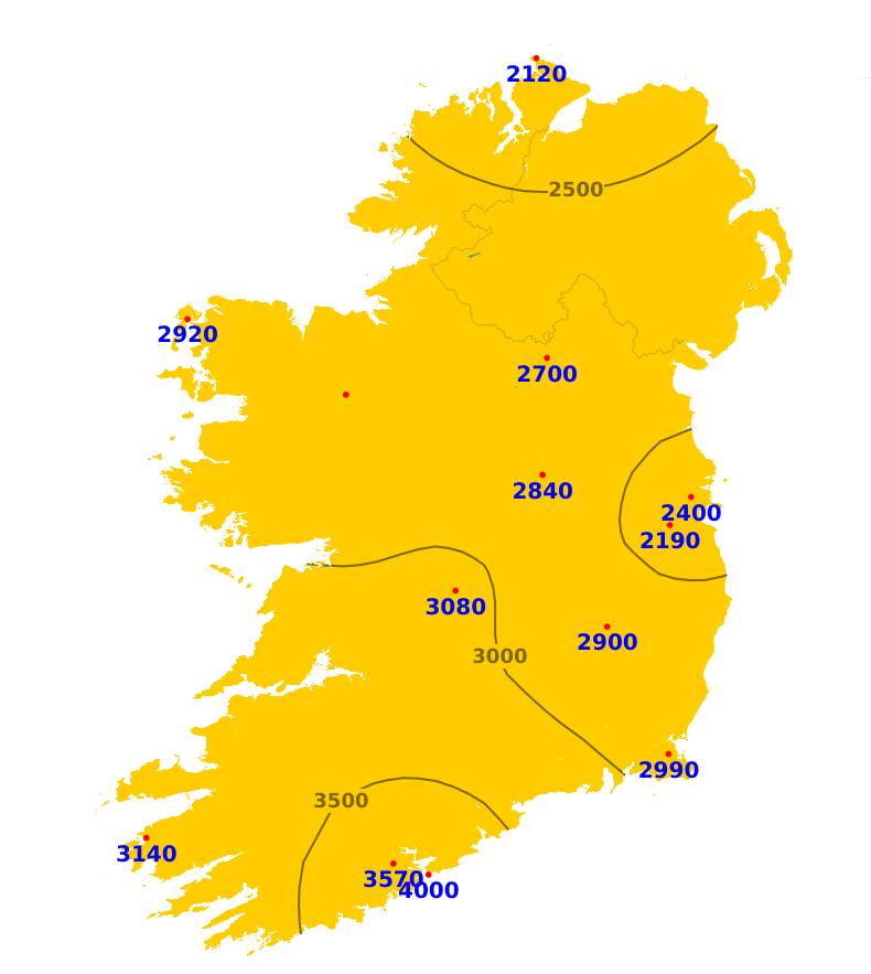 Sunshine amounts were close to or above average in the south-west, mid-west and south-east with 22.6 hours at Cork Airport. Elsewhere, it was duller with 10.5 hours recorded at Casement, Co. Dublin. While there will be sunshine at times, the coming week will be mostly unsettled with below average sunshine amounts expected generally.