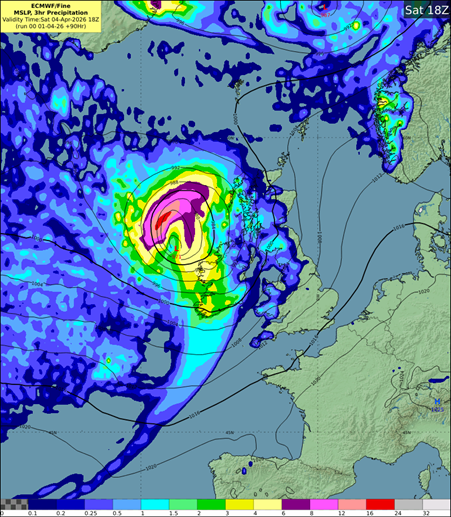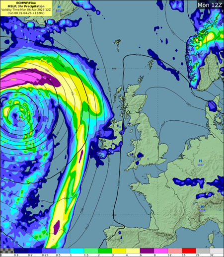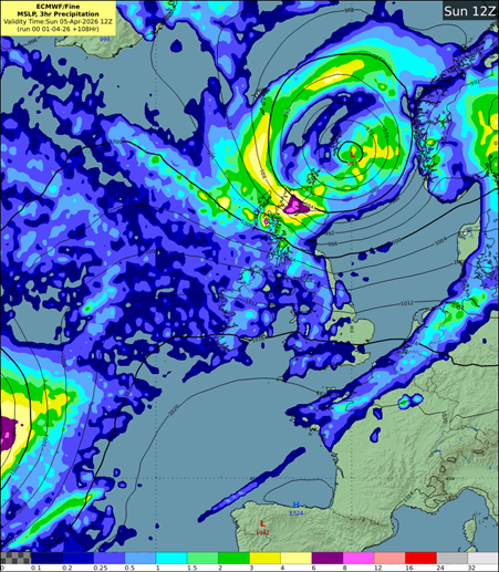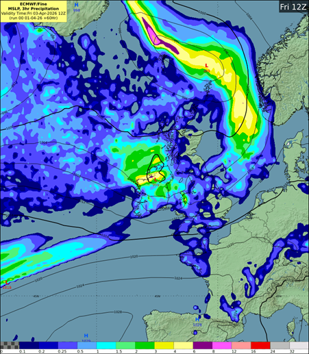 Figure 4 ECMWF model showing predicted precipitation for Friday