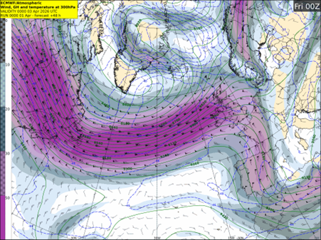 Figure 2 ECMWF model showing strengthening Jet over Ireland
