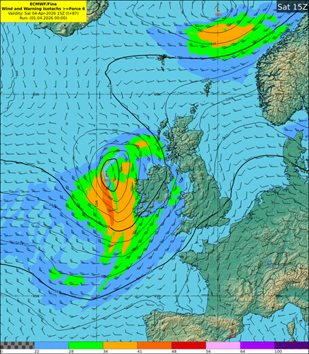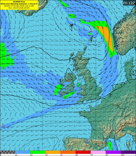 Current indications suggest it will turn windy, especially later in the morning and early afternoon, as a developing depression tracks over the country. Current guidance suggests the system will not undergo rapid deepening, but it could still bring some strong winds along with showery outbreaks of rain.
