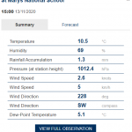 - Checking the observations gives the students an appreciation of the numerical values of weather, eg 10°C feels cool outside, but 13°C feels ok! Or to be able to see that 3mm of rain fell in that heavy shower that just passed over us.
