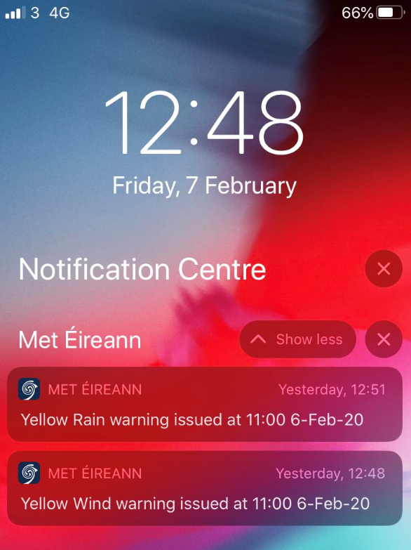 You can now receive push notifications and/or emails of Met Éireann weather warnings that have been issued via two new facilities on the Met Éireann website and app.