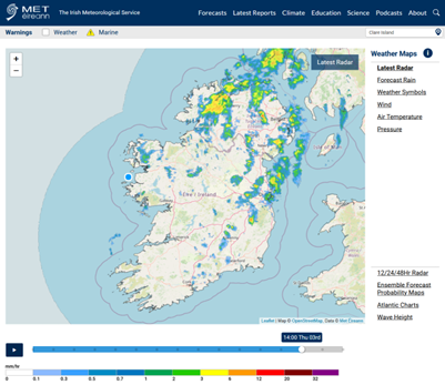 An Radar is Déanaí: Léarscáileanna Aimsire – Met Éireann – Seirbhís Meitéareolaíochta na hÉireann
