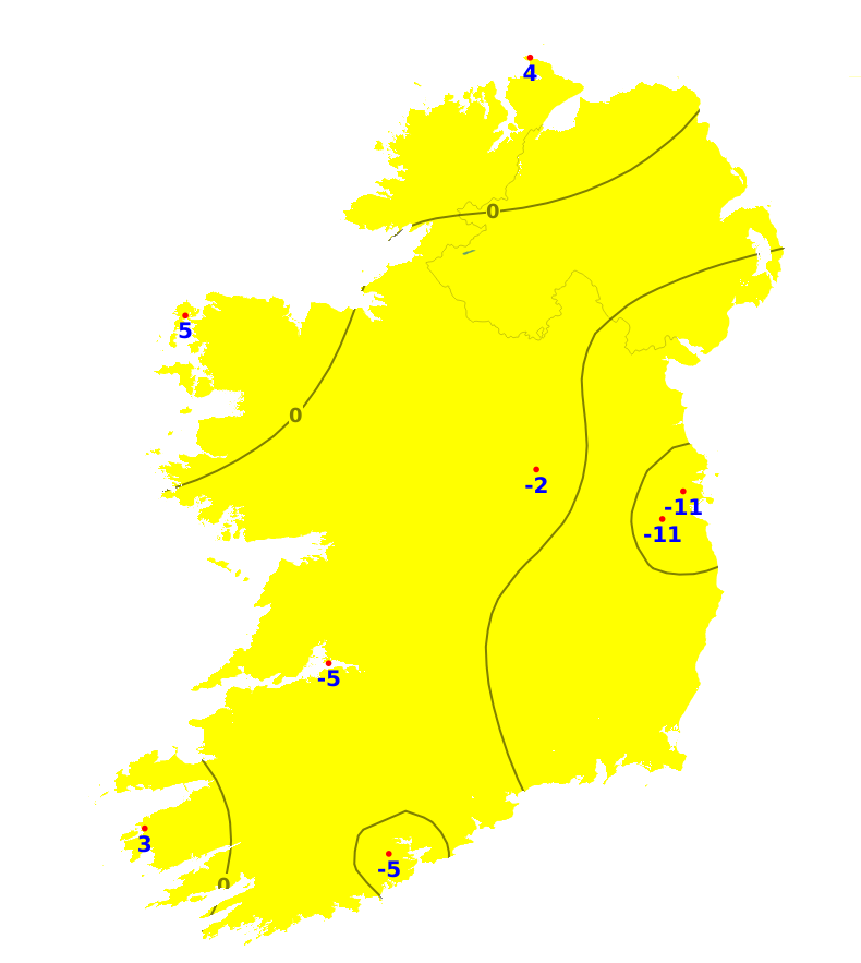 It was much wetter than average for most of the country during the past seven days and some areas experienced four or five times the normal amount for this time of year. It was wettest in the south and southeast with 126.2mm recorded at Johnstown Castle, Co. Wexford. Rainfall amounts were closer to average near western coasts with 30.1mm recorded at Belmullet, Co. Mayo. The weather will generally be more settled this week, though there will be occasional showers and outbreaks of rain. Most areas will receive average or below average rainfall as a result, with the exception of the north-west where rainfall will be slightly above normal.