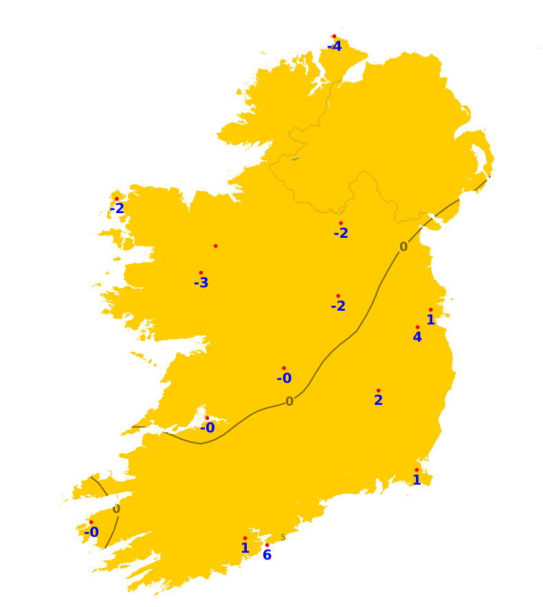 The past week has been milder than normal with mean air temperatures ranging from 7.7 degrees at Ballyhaise, Co. Cavan to 9.4 degrees at both Shannon Airport, Co. Clare and Johnstown Castle, Co. Wexford. This equates to between 0.7 and 2.3 degrees above the average. Mean soil temperatures were also well above normal by 2.3 and 3.7 degrees, ranging from 7.3 and 9.8 degrees. Mean air temperatures will continue above normal by 1 or 2 degrees for the coming week. Mean soil temperatures will continue above average.