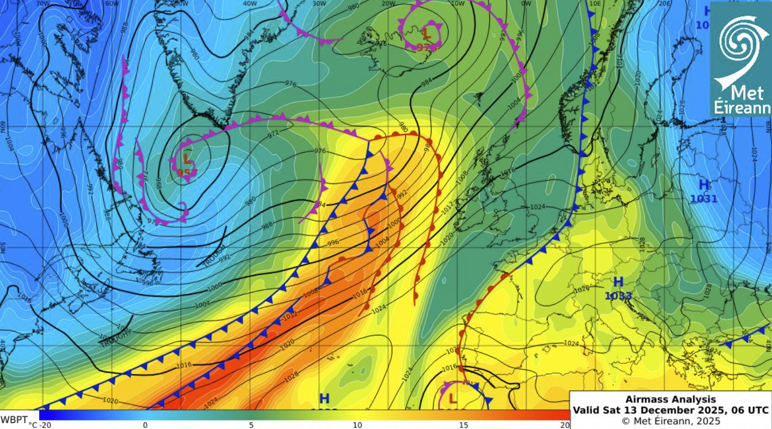 A strong westerly jetstream steers active weather systems across the Atlantic and over Ireland bringing spells of wet and sometimes windy weather over the country.